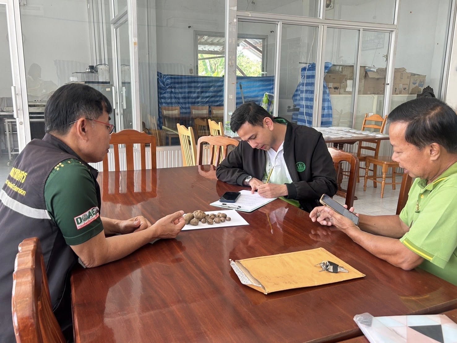 วันที่ 22 ตุลาคม 2568 นายสุรศักดิ์ สิทธิไชย เกษตรจังหวัดมุกดาหาร มอบหมายให้ นายกรีฑาวุธ ทองเสป นักวิชาการส่งเสริมการเกษตรปฏิบัติการ เจ้าหน้าที่กลุ่มส่งเสริมและพัฒนาเกษตรกร และนางสาวอังศุมาลิน ศรีโยหะ เจ้าหน้าที่พัสดุปฏิบัติงาน สำนักงานเกษตรจังหวัดมุกดาหาร ร่วมกับนายบรรดิษฐ น้อยทรง เจ้าพนักงานการเกษตรชำนาญงาน รักษาราชการแทนเกษตรอำเภอหนองสูง สำนักงานเกษตรอำเภอหนองสูง ร่วมเยี่ยมเยียนและติดตามการดำเนินงานของวิสาหกิจชุมชนกลุ่มผู้ปลูกบุกเพื่ออุตสาหกรรมอาหาร เพื่อสมัครเข้าร่วมกิจกรรมการพัฒนาวิสาหกิจชุมชนสู่ผู้ประกอบการธุรกิจเกษตรต้นแบบ ภายใต้โครงการส่งเสริมและพัฒนาผู้ประกอบการวิสาหกิจชุมชน ประจำปีงบประมาณ พ.ศ. 2569 โดยวิสาหกิจชุมชนพร้อมที่จะเข้าร่วมกิจกรรมและผลักดันผลิตภัณฑ์ใหม่ คือ บุกเพื่ออาหารอนาคต ณ ที่ทำการวิสาหกิจชุมชนกลุ่มผู้ปลูกบุกเพื่ออุตสาหกรรมอาหาร ต.หนองสูงเหนือ อ.หนองสูง จ.มุกดาหาร
